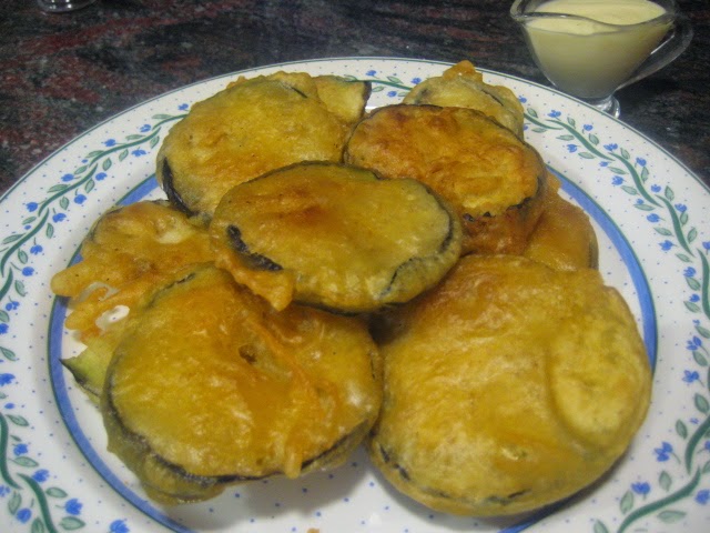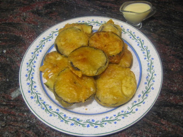 Preparación: Cortar la berenjena en rodajas finas y dejarla una media hora en una mezcla de mitad agua y mitad leche junto con un poco de sal. Una vez pasado este tiempo, escurrir bien. Para hacer la tempura, poner en un bol la harina y verter poco a poco el agua helada, mientras removemos con unas varillas. en una sartén poner a calentar abundante aceite y cuando esté caliente ir mojando las rodajas de berenjena en la tempura y freír. Cuando se hayan dorado por un lado, dar la vuelta y dorar por el otro lado. Escurrir sobre un papel absorbente y servir recién hechas con una salsa de queso, un dip a nuestro gusto o con un chorrito de miel. En lugar de en rodajas se pueden cortar en bastones como las patatas. Si preferimos hacemos un rebozo de harina y huevo y también podemos añadir calabacín para combinar las dos hortalizas. Eso un poco al gusto. Es un plato para comer recién hecho porque una vez fría la tempura pierde todo su encanto, lo que no sucede con el rebozo de harina y huevo que también está bueno frío. Si se dejan escurrir sobre rejilla la tempura queda bien crujiente y sin aceite.