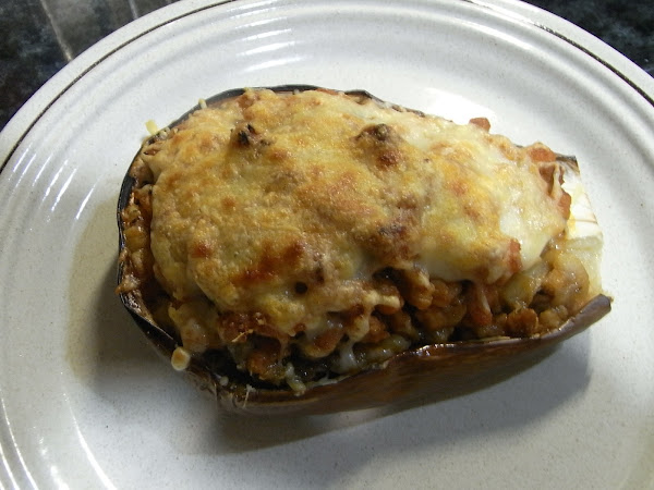 La soja texturizada puede sustituir a la carne picada en cualquier receta desde unos macarrones a la boloñesa hasta unas berenjenas rellenas como las que he hecho yo. En la tienda donde yo fui la tienen en 3 tamaños y yo elegí el mediano por similitud a la carne picada.