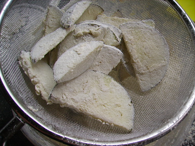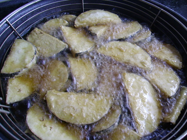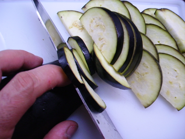 1.- Enjuagamos las berenjenas, quitamos el tallo, cortamos por la mitad a lo largo y hacemos rodajitas finas.