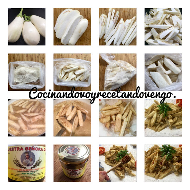 Hola a tod@s!! Hoy os traigo una receta muy malagueña, estamos en plena temporada de berenjenas y hay que disfrutar de ellas, esta receta es muy tradicional en los pueblos de Andalucía y una de las preferidas de mi hija Silvia, es una forma deliciosa para que los más pequeños de la casa se acerquen a las verduras y con buena cara ;) Es una guarnición o aperitivo muy fácil de hacer que siempre cautiva a todos y que en mi casa nos encanta. Es muy recomendable acompañarlas con un hilo de miel de caña, (La única fábrica de miel de caña de toda Europa, se encuentra en el precioso pueblo malagueño de Frigiliana, una miel única, de alta calidad, ideal para postres y como en este caso para convinar con frituras). Por aquí es muy tradicional esta miel en la cocina junto con las berenjenas y es una ración que la puedes encontrar con facilidad en toda la provincia malagueña, plato popular que ha llegado a las cartas de restaurantes por su sabor inmejorable. En Málaga son expertos en "los fritos" y hace años vi un documental que las verduras en tempura puede que tuviesen su origen en Málaga, todos sabemos el arte que existe con el "pescaito frito" pues decía el documental que los pescadores de la zona, cuando no podían salir a faenar (pescar), solían tener un huerto que lo cultivaban en esos días sin pesca, comenzaron a cocinar las verduras como los pescados, siguiendo los mismos procesos y sin entrar en polémicas jajajajaja decía que las verduras con tempuras de los chinos tenían su origen en Málaga, de cualquier modo es una receta que os recomiendo porque además de económica y típica dieta mediterránea es una delicia muy fácil de hacer.