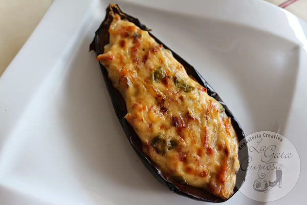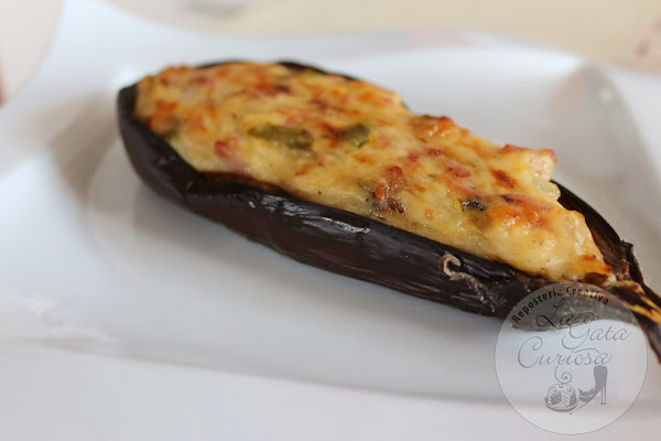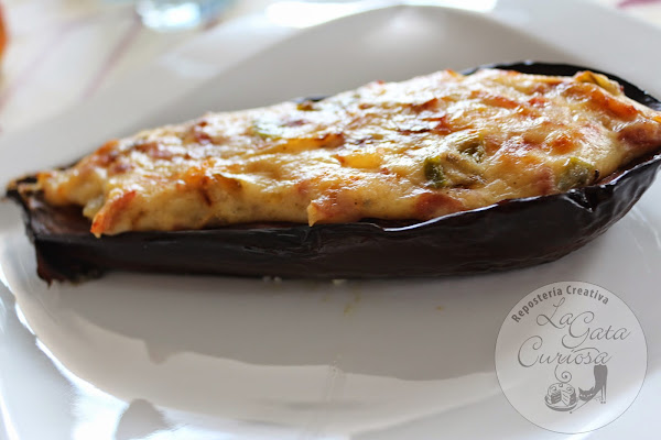 Con tanto trabajo solo tenía las berenjenas ya asadas en el horno y nada para el relleno, así que tirando de la nevera al final han quedado mucho mejor de lo que pensé en un primer momento, a todos les han gustado mucho, para que os queden aún mejor ponerles un poquito de queso
