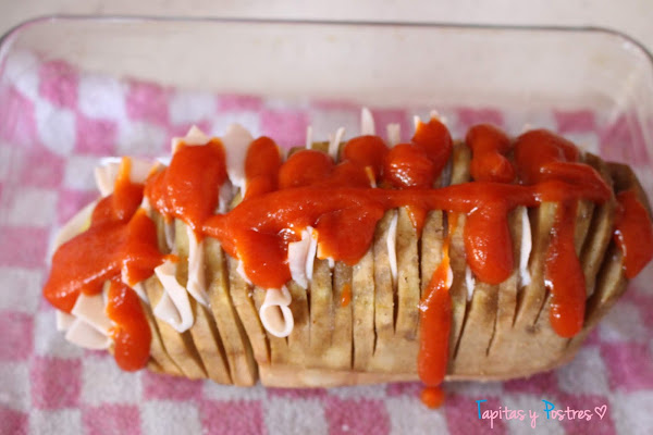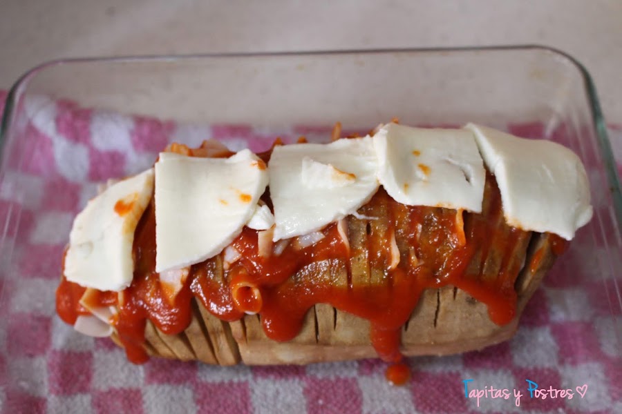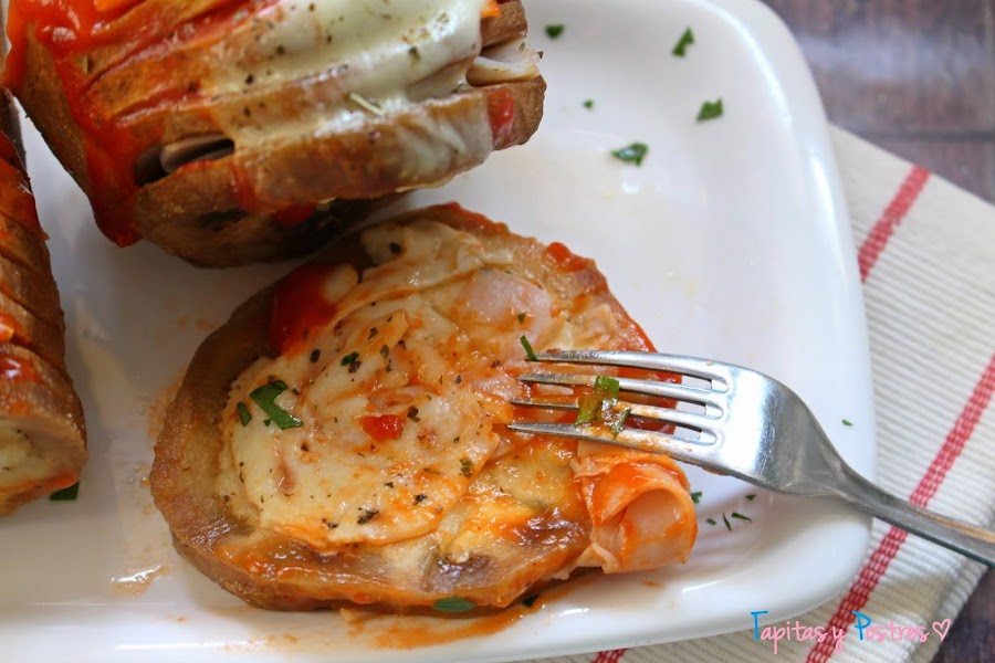En esas rodajas se pueden meter cosas que den sabor a las patatas: bacon, queso, especias...todo esto las convierte en una especie de guarnición muy atractiva.