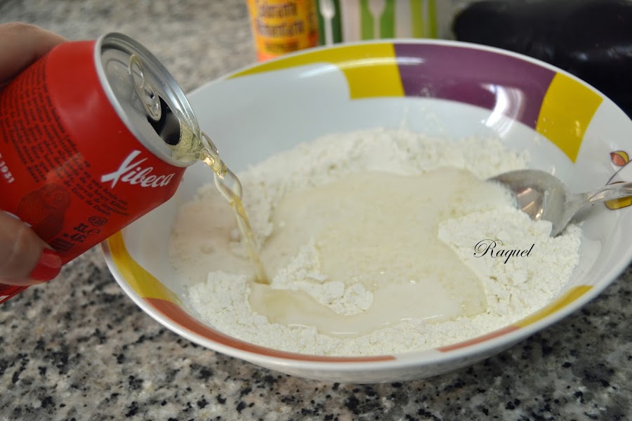 En otro bol ponemos una cantidad de harina y un poco de sal y añadimos un chorro de cerveza a ser mejor que este bien fría así el rebozado estará después mas crujiente.