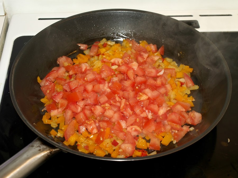 - Añadimos entonces el tomate y seguimos cocinando unos minutos más.