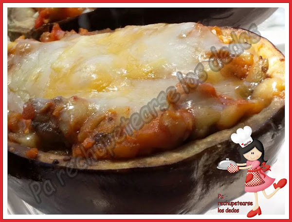 - Ve rellenando cada mitad de berenjena con la mezcla y ve poniéndolas sobre una fuente apta para horno.- Cuando ya las tengas todas rellenas, échale el queso rallado y gratina un par de minutos..
