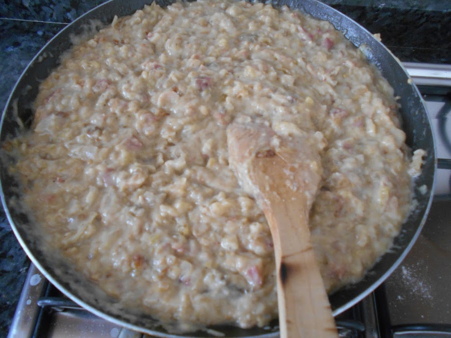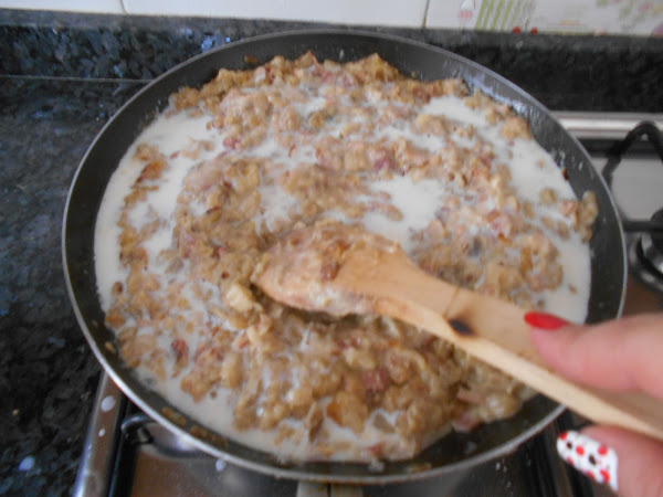 Vertemos la leche sin dejar de remover y poco a poco hasta que quede una mezcla densa y homogénea.