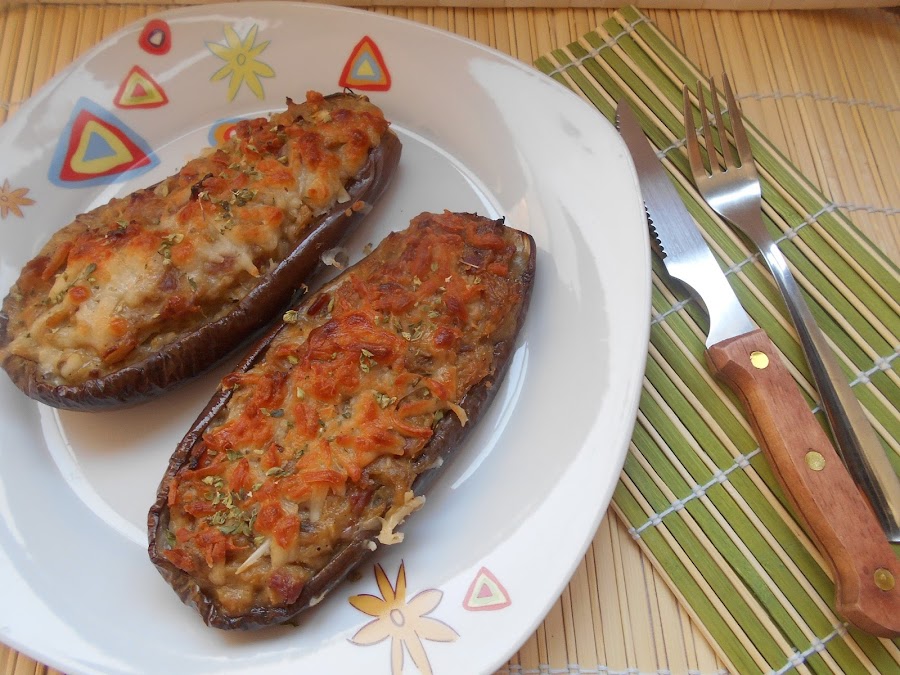 hoy os traigo esta receta tan conocida de berenjenas rellenas, en esta ocasion decidi rellenarlas con calabacin y bacon. He de decir, que estan buenas buenas, buenas de verdad.