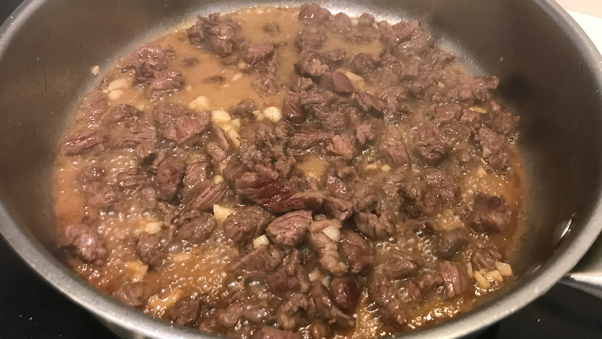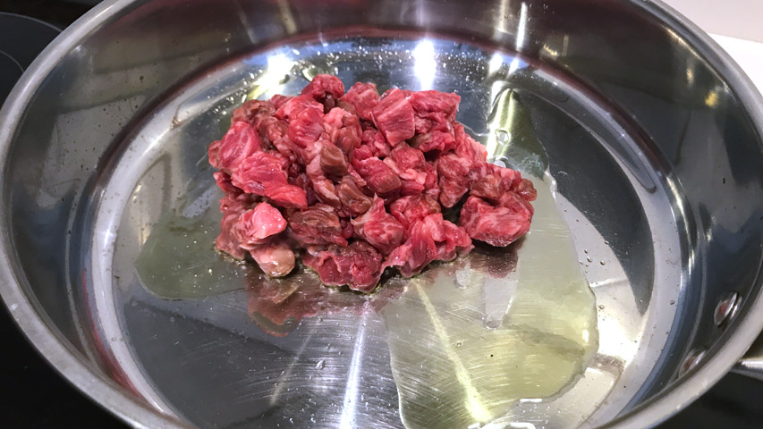 Fuego alto, un poco de aceite de oliva, sal y pimienta. Un breve salteado será suficiente para que la carne quede jugosa.