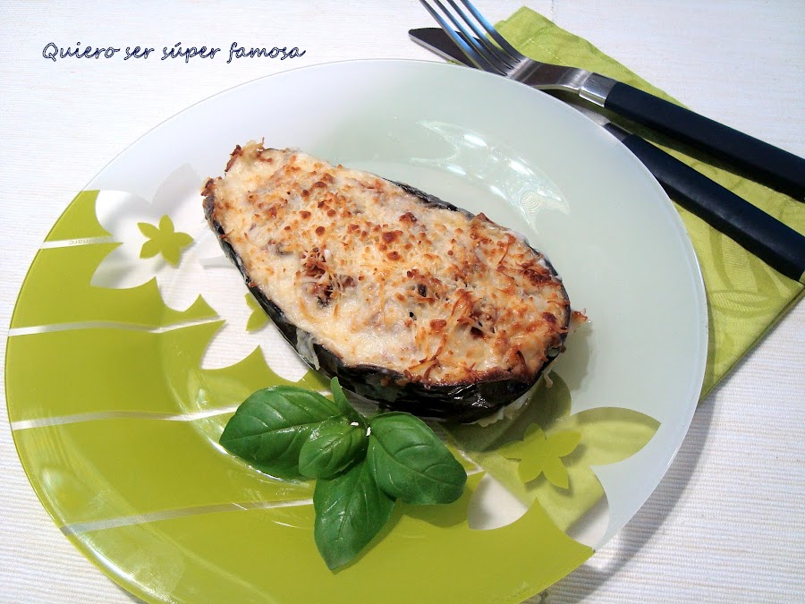 Vaciar las berenjenas. Yo les dejo un pequeño borde y algo de pulpa en el fondo de las mismas. Trocear la pulpa y añadir al sofrito. Mezclar todo.