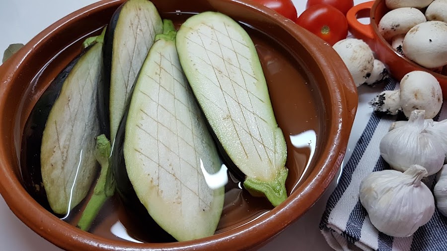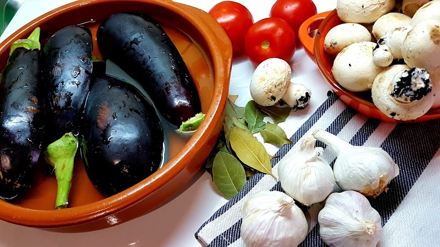 Para hoy tengo un plato saludable de verduras; unas berenjenas asadas y rellenas de champiñones que están acompañada de otras verduras. Además, están llenas de ricos sabores y aromas.