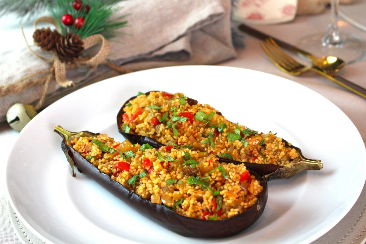 Mi propuesta para el menú de Navidad de berenjenas rellenas de cuscús, verduras y pasas es para aquellos que quieren comer de manera saludable, aunque sea una celebración especial como Nochebuena, Navidad y Nochevieja. O aquellos vegetarianos y veganos que quieren cenar por todo lo alto estas fechas.