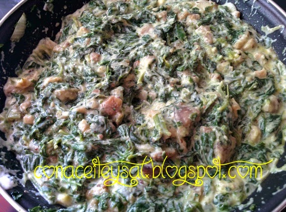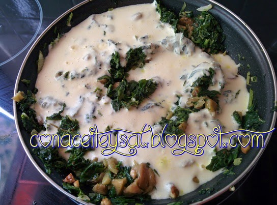 Una vez tenemos la bechamel lista, la vertemos en las espinacas y damos un par de vueltas para que ligue y reservamos. (si les gusta mas liquida solo tienen que añadir un poco mas de leche).