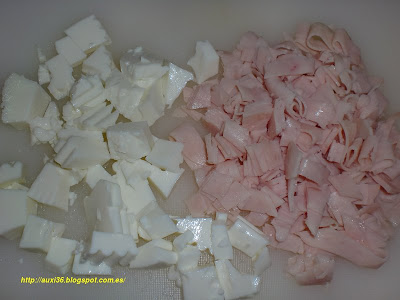 y se lo añadimos a nuestra mezcla de carne queso y pavo