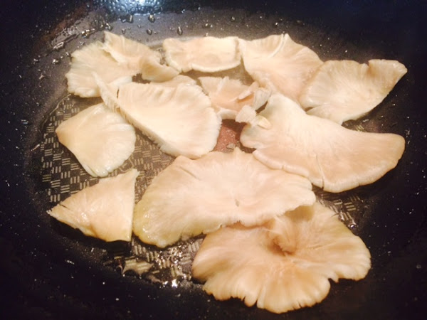 Lo primero limpiar las setas y quitarles el tallo y hacerlas a la plancha hasta que cojan un poco de color dorado, salpimentar y reservar.