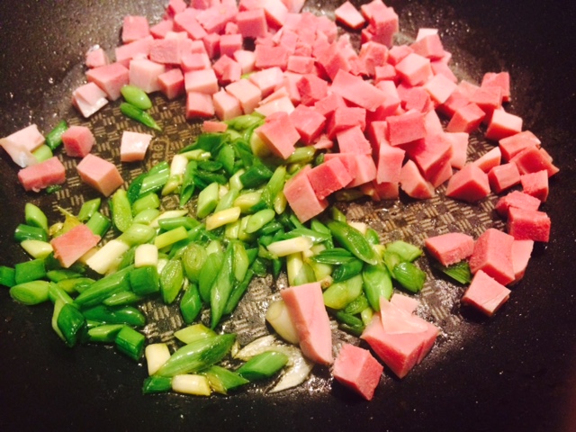 Pasado este tiempo, añadir el jamón cortado en dados.