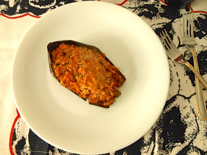 Transcurrido el tiempo rellena las pieles de las berenjenas con la mezcla anterior.