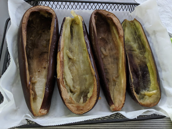 Queso emental rallado o el que tú prefieras para gratinarPartimos longitudinalmente las berenjenas y hacemos unos cortes superficiales. Metemos en el microondas a máxima potencia (800 wat, 6 minutos, 3 medias mitades)