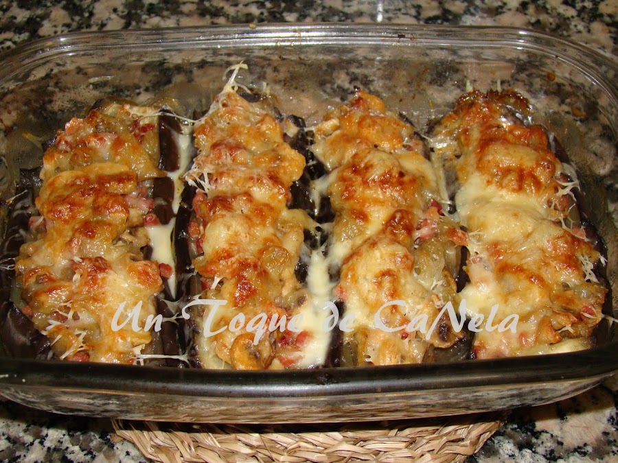 Poner las berenjenas en bandeja de horno y rellenar con las verduras.