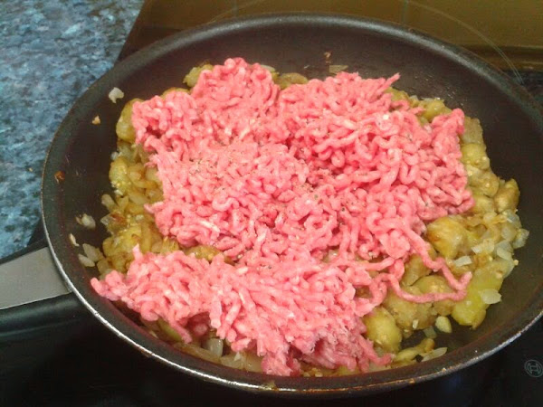Agregamos la carne, salpimentamos y dejamos que se cocine el conjunto a fuego suave hasta que la carne esté hecha.