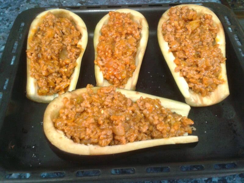 Rellenamos las berenjenas.