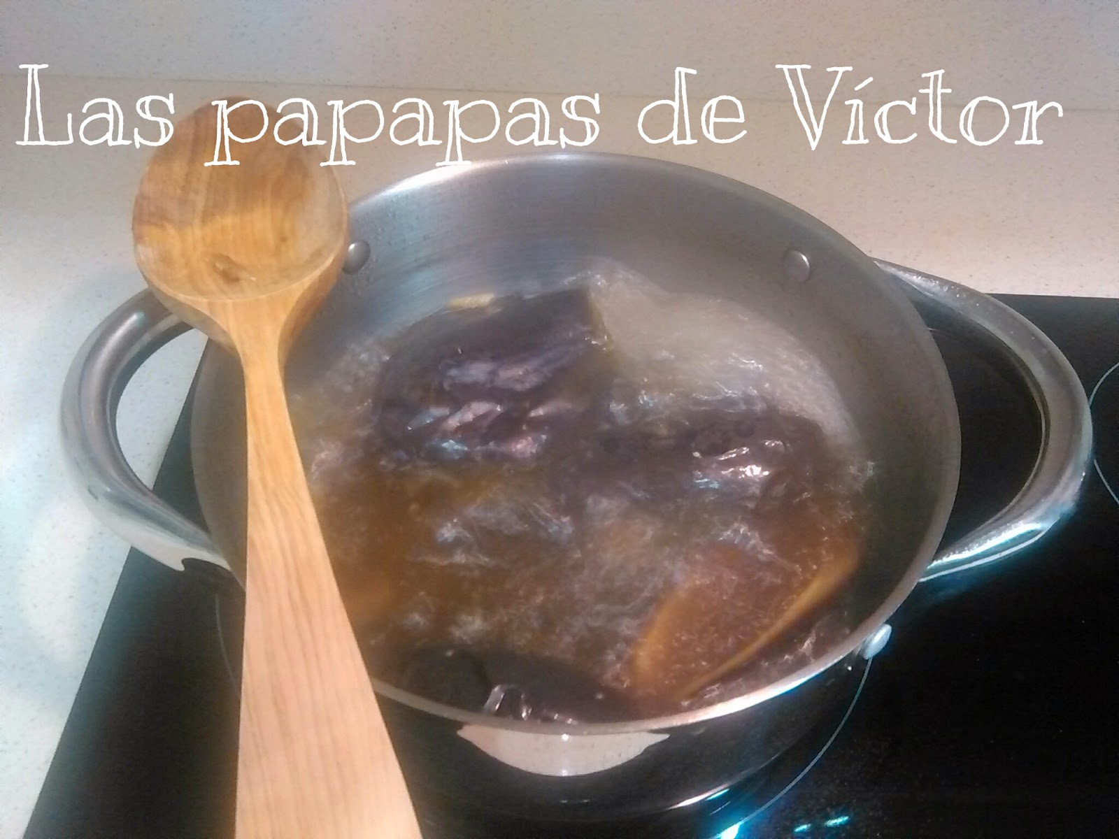 A la vez que en otra olla más alta habreis cubierto de agua las berenjenas que antes las habeis abierto por la mitad y sacado la pulpa.