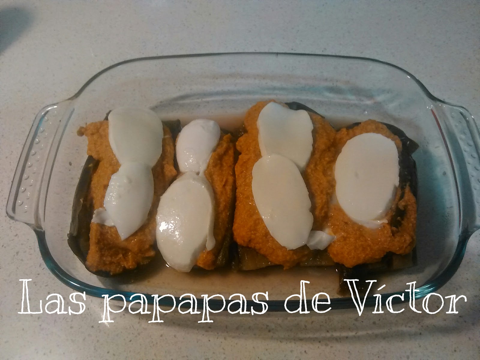 seguiremos triturando y despues solo queda rellenar nuestra querisimas berenjenas y ponerles por encima el queso que más os guste a mi me gustan todos sin excepción, pero hoy me a apetecido un mozzarela cortado a rodajitas.