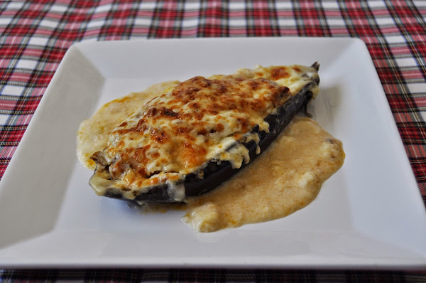 Empezamos a preparar las berenjenas, en la parte del medio, con un cuchillo, procurando no profundizar mucho para no romperlas, haremos unos cortes en forma cruzada que nos permitirán después, vaciar la pulpa con una cuchara.
