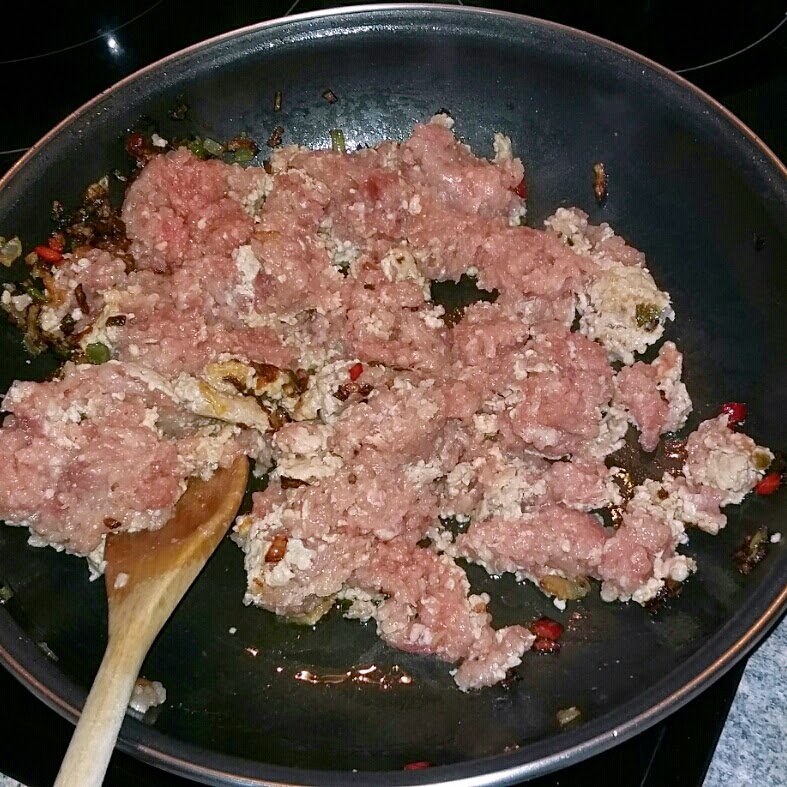Removemos hasta que se cocine bien la carne y le echamos un poco de tomate frito (cada uno a su gusto).