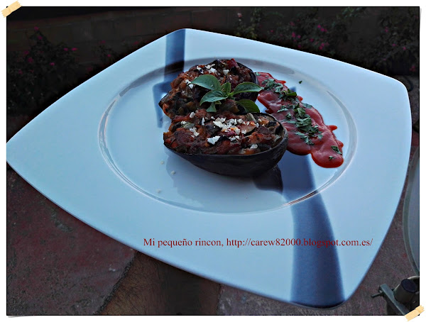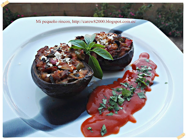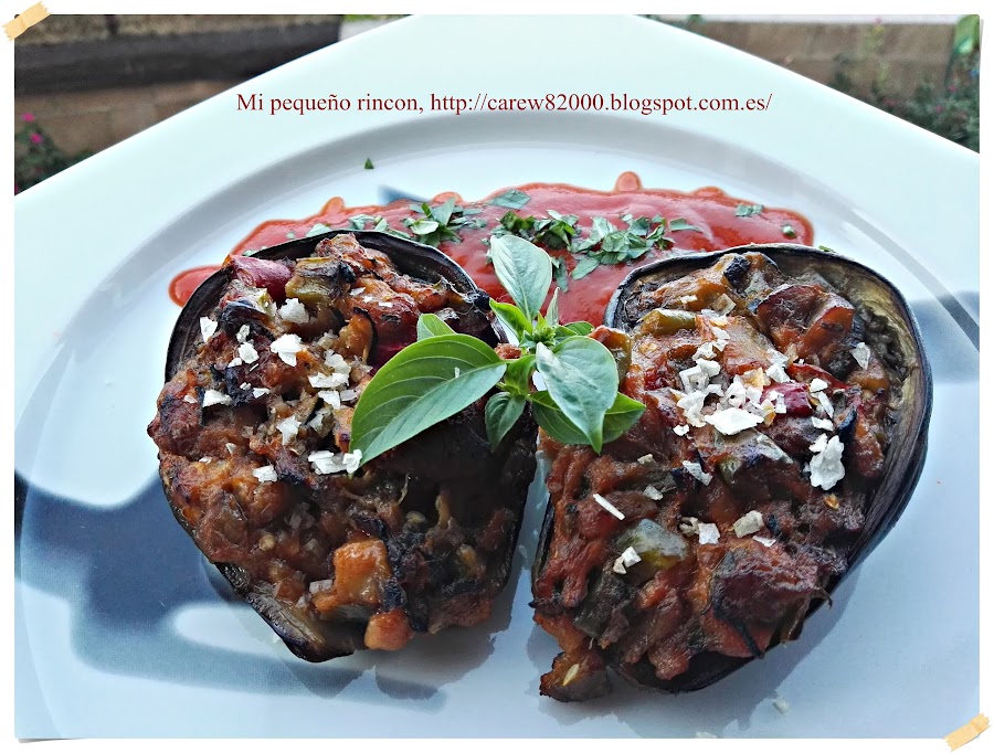 Lavamos las berenjenas y las abrimos por la mitad y con ayuda de una cuchara las vaciamos pero sin quitar toda la carne.