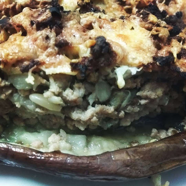 Hoy berenjenas rellenas de carne picada con paté y gratinado de mini babybel.