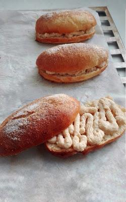 Sacamos, dejamos entibiar, cortamos por en medio y rellenamos con la crema pastelera reservada