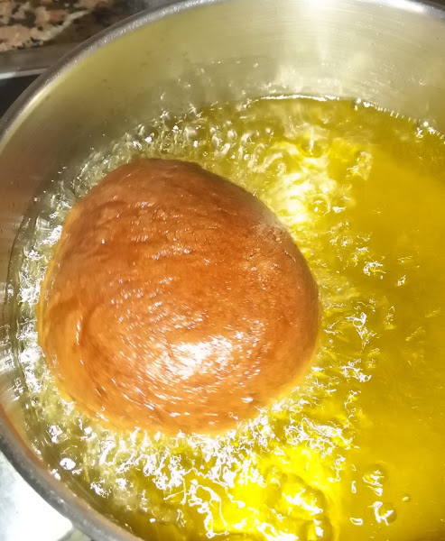 Después ya solo queda freír en abundante aceite, yo lo hice en un cazo pequeño, las hice de una en una, se hacen muy rápido y nada que te pasas se queman, así que muy al loro. Que las mías quedaron un poquito negras, entre que se hacen rápido y que tenía miedo que no quedaran bien por dentro pues casi tengo conguitos gigantes. Hay que controlar continuamente la temperatura a la hora de freír.