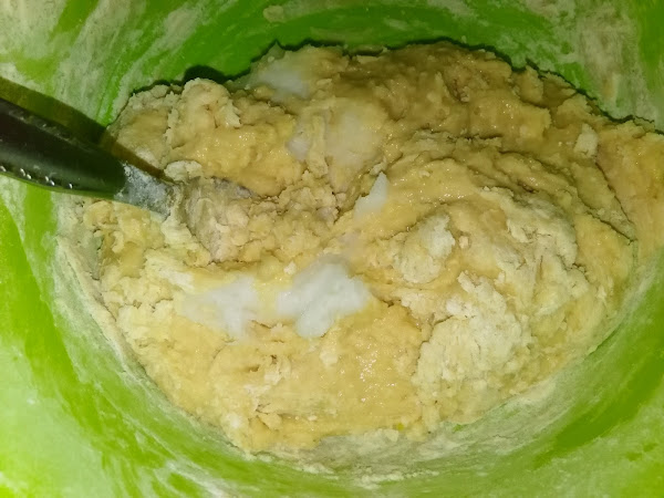 Después de añadir la harina ponemos la manteca (mejor a temperatura ambiente) y vamos mezclando todo bien hasta que los ingredientes queden bien integrados