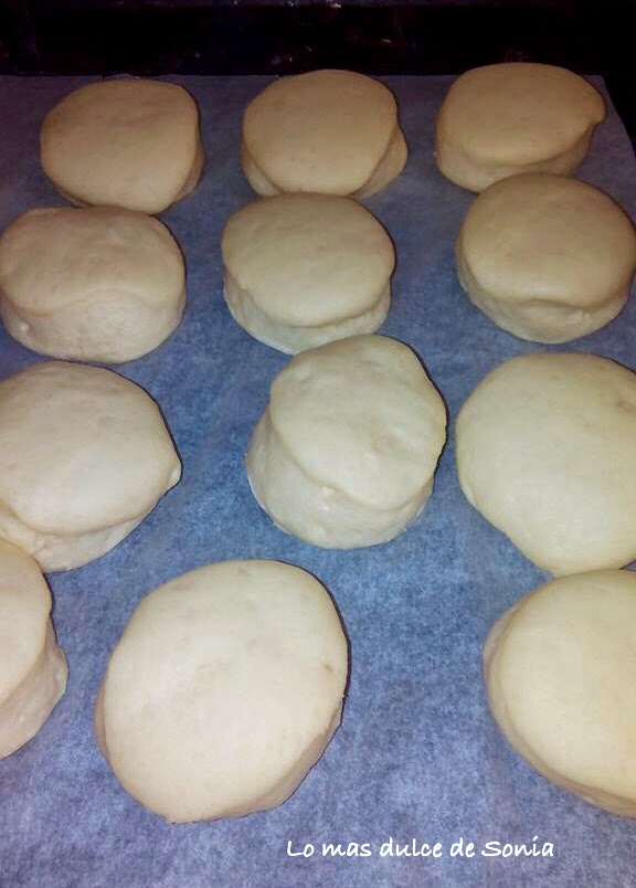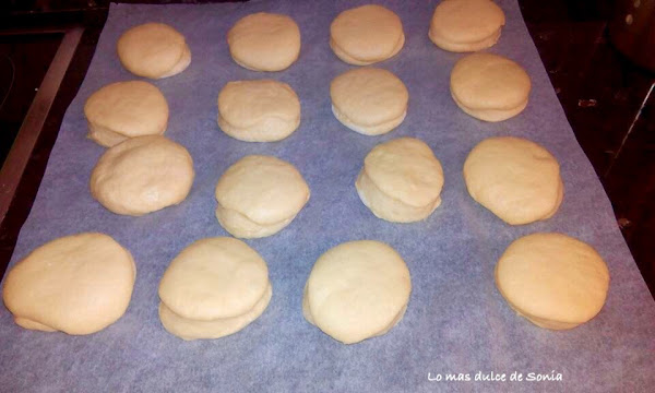 Estirarmos con un rodillo, dejando un grosor de unos 2 cm. Cortar las berlinesas con un cortapastas o un vaso. Colocarlas en una bandeja cubierta con papel de hornear o pincelada con un poco de aceite, un poco separadas unas de otras.