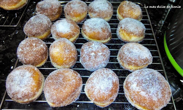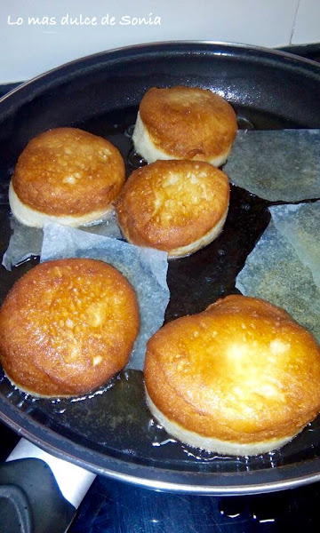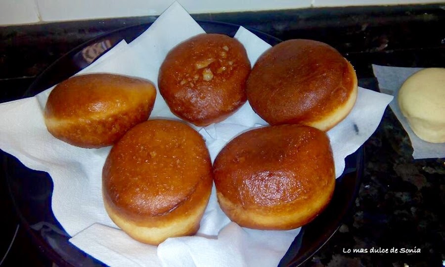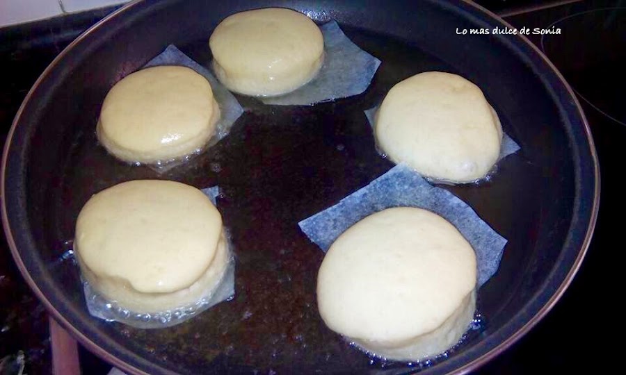 Cuando hago las berlinesas, las voy colocando separadas cobre papel de hornear. Después recorto el papel y las frío junto con el papel. Para no manipular la masa.