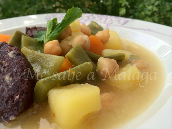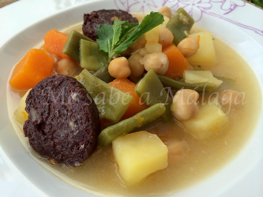 El caldo base para hacer la berza lo sacamos de un puchero. Pulsando aquí tenéis la receta del puchero malagueño.