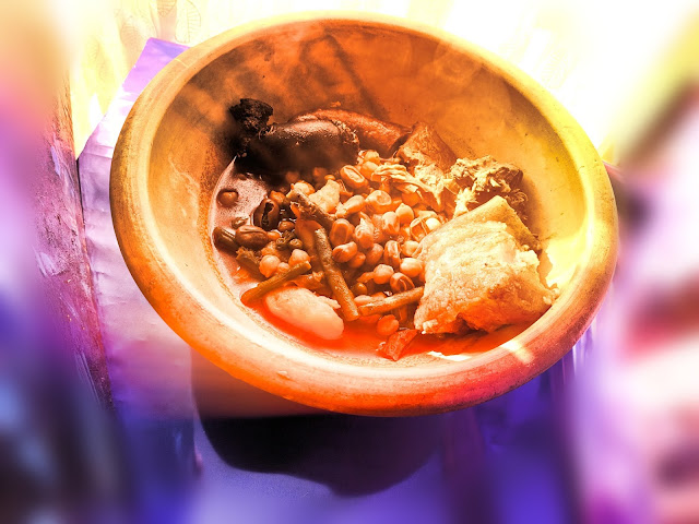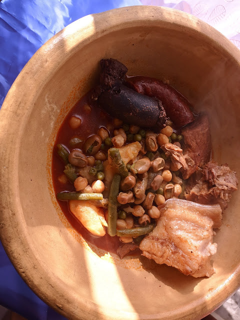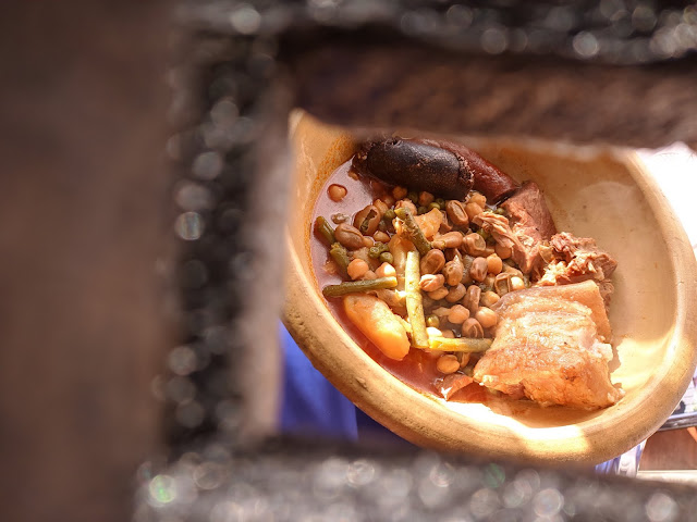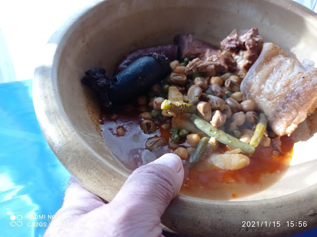 Una pringá ( un trozo de magro de cerdo, un trozo de chorizo, un trozo de morcilla y un trozo de tonino ).