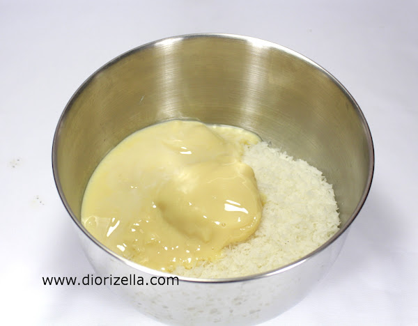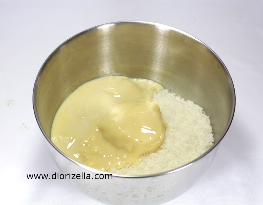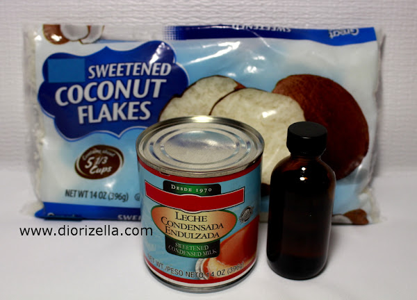 Los ingredientes que necesitas son: leche condensada, coco rayado y extracto de almendras.