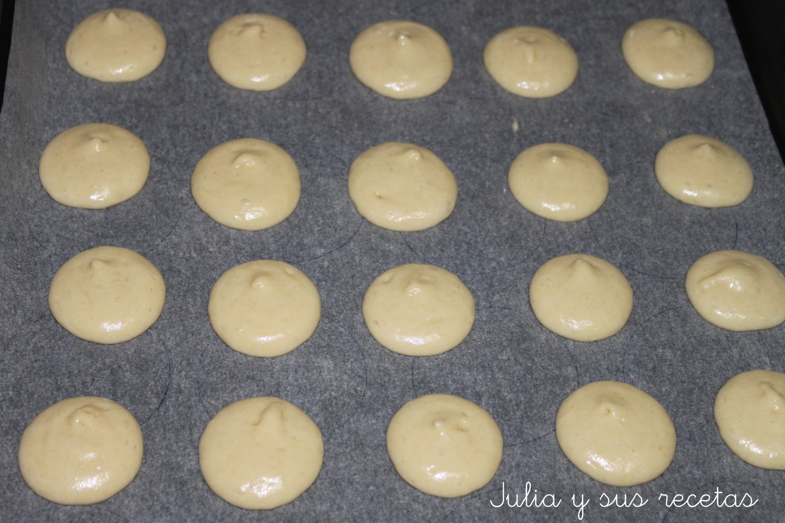 Batimos los huevos con el azúcar hasta que blanqueen, añadimos el aceite frío, la leche y la harina junto con las gaseosas mezcladas, lo mezclamos todo y la masa la ponemos en una manga pastelera con boquilla lisa o una bolsa de plástico (le cortamos el pico cuando le echemos la masa).Encima de la bandeja de horno ponemos un papel vegetal y vamos poniendo montoncitos procurando que todos salga mas o menos iguales.