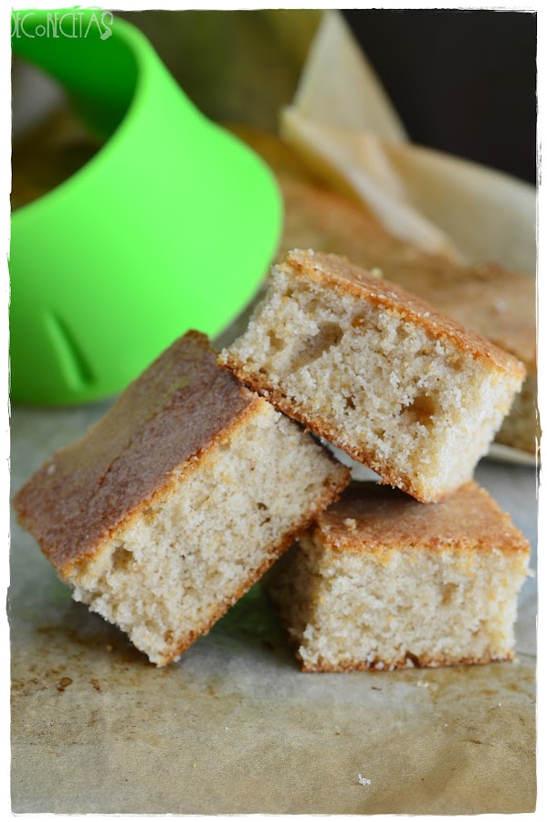 PREPARACIÓN: Para realizarla batimos los dos huevos con el azúcar hasta que doblen su tamaño y esponje, en ese momento añadimos la nata (crema de leche) y la manteca derretida y mezclamos hasta integrar por completo. Por último añadimos la harina junto con la levadura y la canela todo ello tamizadas y envolvemos con movimientos envolventes gracias a una espátula de silicona. Esta mezcla la depositamos en el molde que elijamos previamente engrasado. En mi caso utilicé una banda de silicona con imán que agarra perfectamente en la bandeja y nos permite realizar la forma que queramos acomodando la lámina de la forma deseada. Espolvoreamos azúcar por encima e introducimos en el horno precalentado anteriormente a 180 grados unos 30 o 40 minutos, en mi caso, ya que no tenía mucho grosor, pero lo tendréis que controlar en vuestro horno pinchando con un palillo