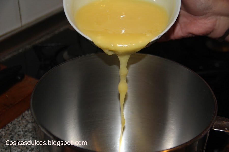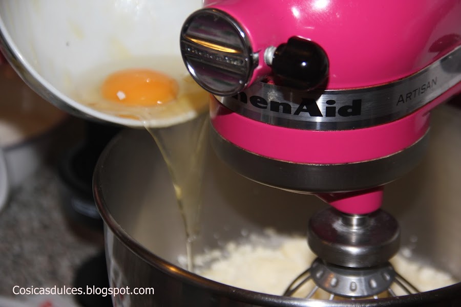 Comenzamos derritiendo ligeramente la manteca de vaca. Es muy importante que no llegue a hervir y la batimos con el azúcar hasta obtener una mezcla blanquecina.