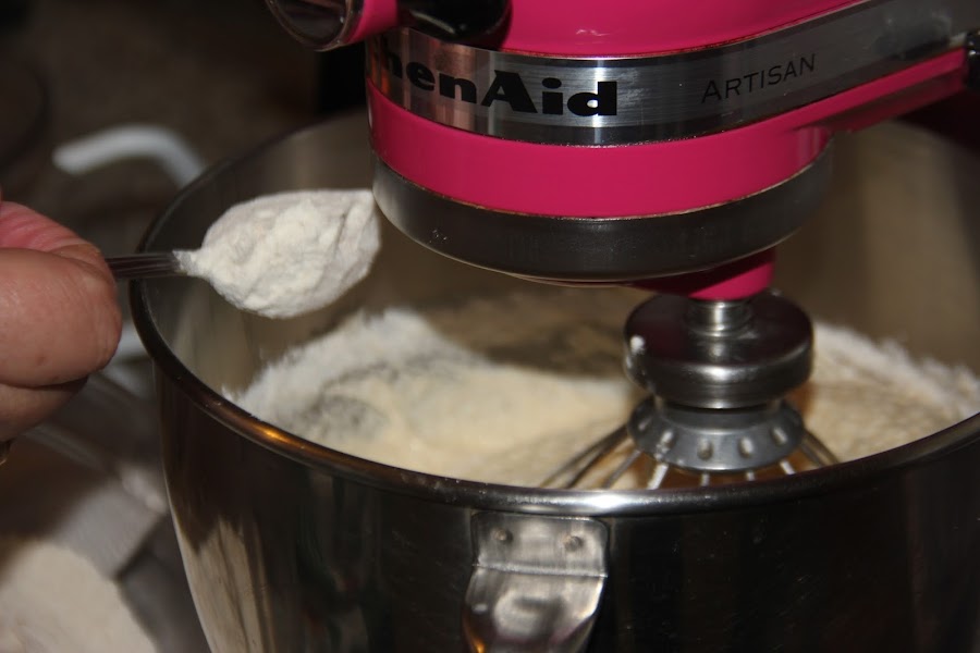 Seguidamente añadimos nuestra masa madre a trocitos y seguimos batiendo para que se incorporé bien al resto de la mezcla. Por último incorporamos la harina, que habremos tamizado junto a la canela y la sal) a cucharadas.