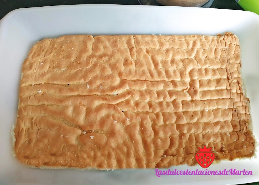 Ponemos sobre la base del molde que vayamos a utilizar, la plancha de bizcocho o los bizcochos de soletilla,(según lo que usemos).