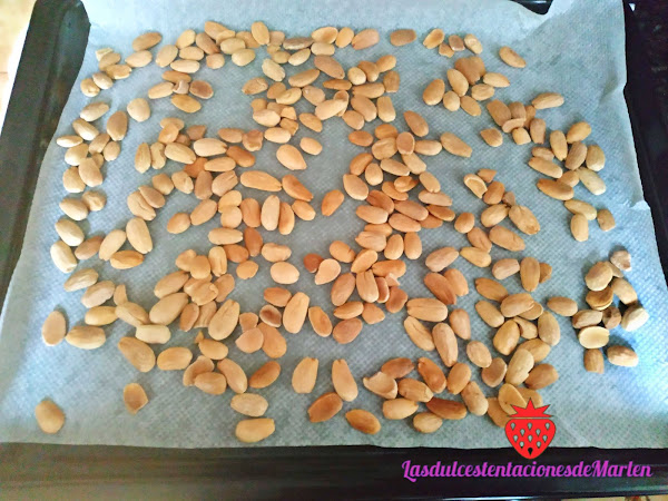 Tostamos las almendras (mejor en el horno) y las trituramos (una vez que estén frías) sin que queden muy molidas.