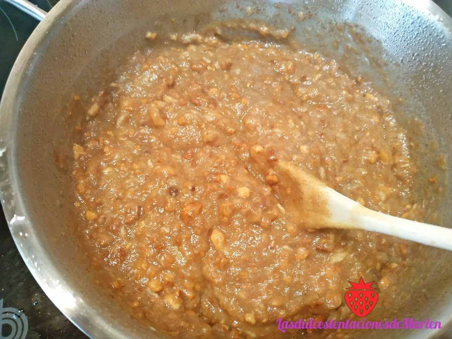 Apartamos del fuego y echamos esta mezcla sobre el cabello de ángel, bien extendida.