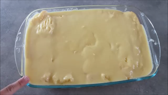 y vamos haciendo capas de bizcochos y crema hasta acabar con una capa de crema...