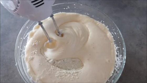 * Incorporamos ahora la harina con la levadura previamente tamizadas y batimos hasta conseguir una mezcla homogénea.
