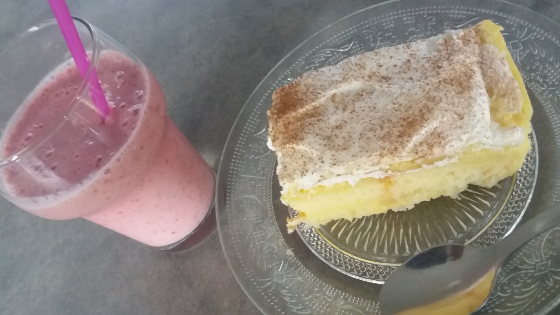 Ahora para el glaseado vamos a usar las claras que teníamos reservadas y también: 1 taza y media de azúcar glas o impalpable y el zumo de medio limón.