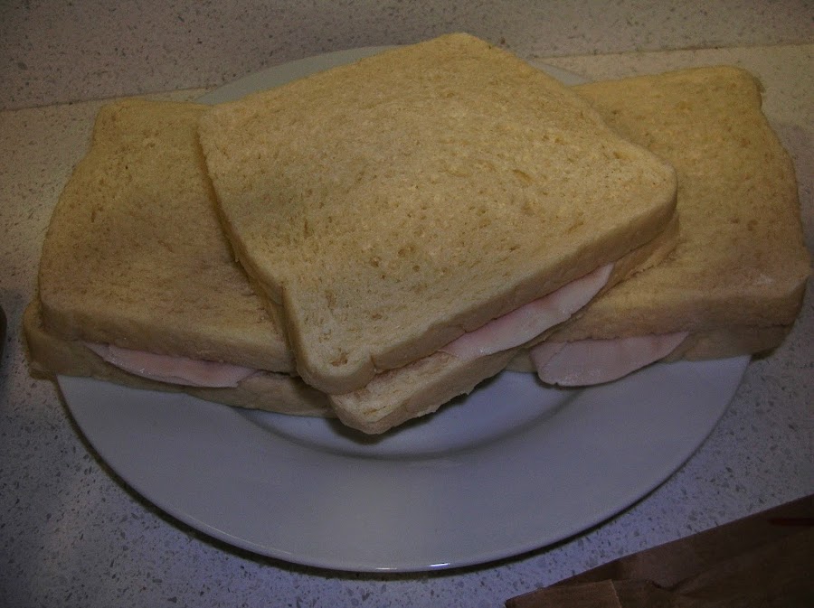 Cogéis los ingrediente antes mencionados el pan, el jamón dulce y el queso