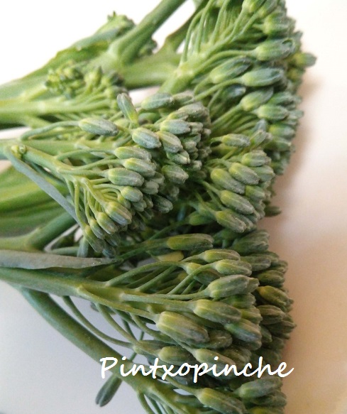 En primer lugar, os voy a hablar del Bimi,y ¿qué es eso? os preguntaréis muchos, para quien lo no conozca el Bimi es uno de esos nuevos ingredientes que seguramente no encontrarás en la frutería de tu barrio, tendrás que buscarlo en lugares especializados o que sean muy novedosos y punteros en la materia, entre otras cosas porque es una verdura que se cultiva en la región de Lorca (Murcia) pero que suele exportarse fuera de nuestro país, que tiene muchos seguidores en Europa y se está empezando a apreciar en España, entre otros motivos por el precio de esta verdura que aún es un poco caro. El Bimi es un mezcla entre el brocoli y la col china Kai-lan, se come entero desde la flor al tallo aunque con el brocoli es parecido, pues se puede aprovechar el tallo y queda bastante bueno hervido y salteado.